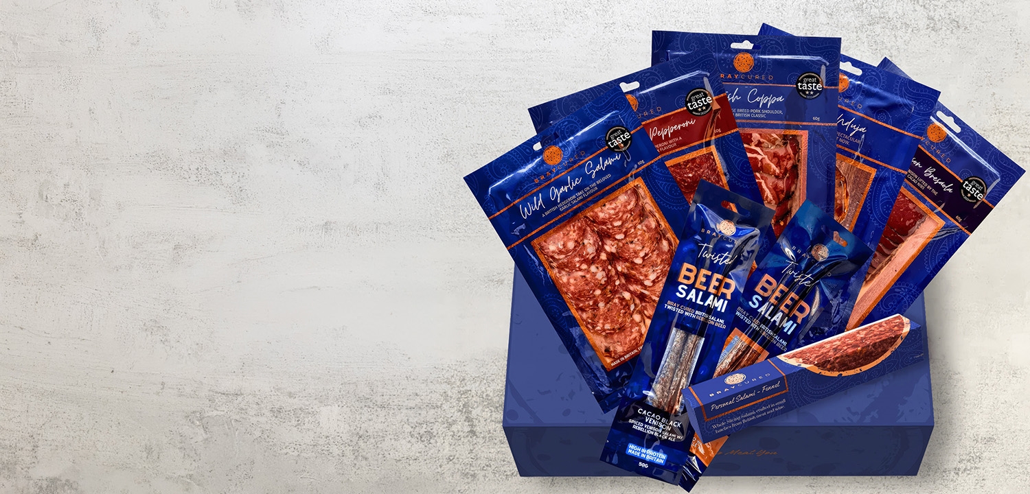 All the charcuterie in these gift boxes is artisan-made by Bray Cure in Berkshire. This family-run company produces the finest new British charcuterie using both traditional and innovative new techniques.