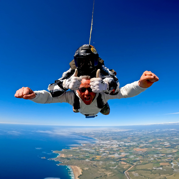 We are offering vouchers for tandem skydives out of Perranporth. That's the one where you are harnessed together with an instructor and there's no long training session before you go, just a clear and concise safety briefing.